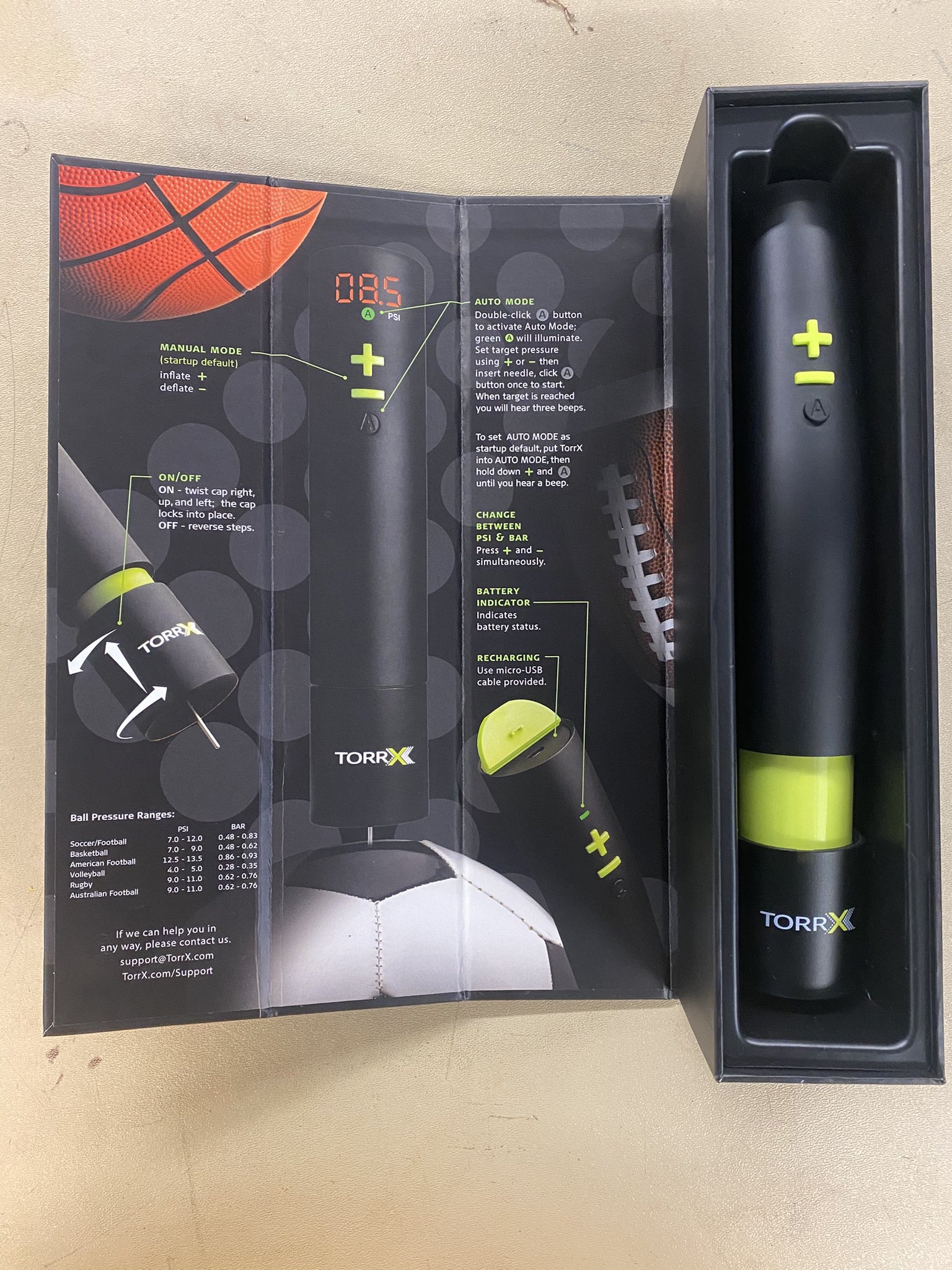 Accurate and easy to use, the TorrX smart ball pump inflates or deflates each ball to the desired pressure.